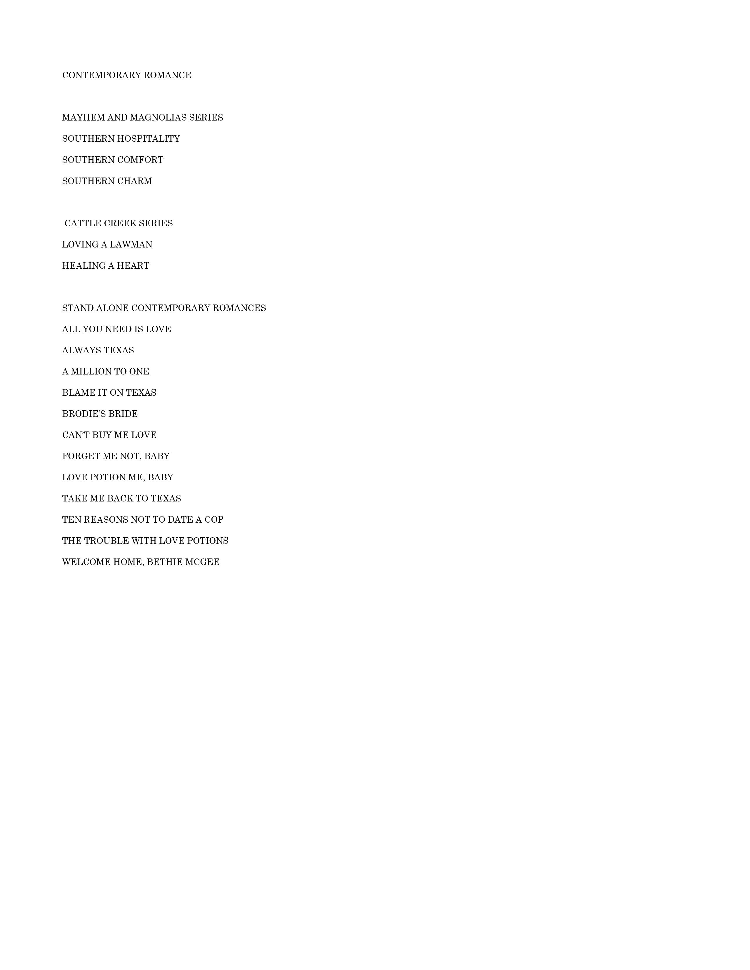 Contemporary romance–printable list